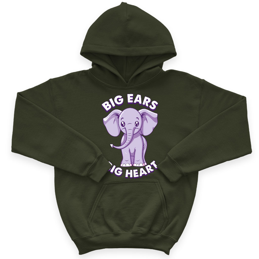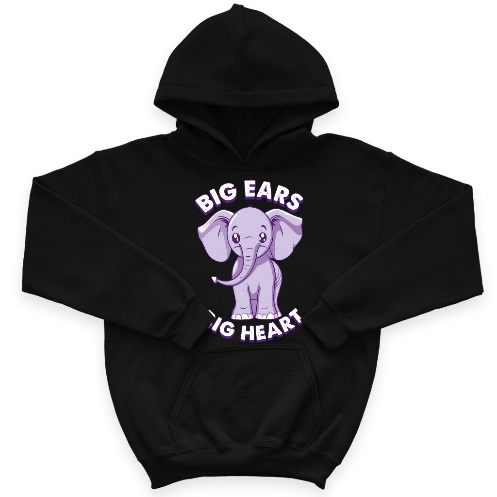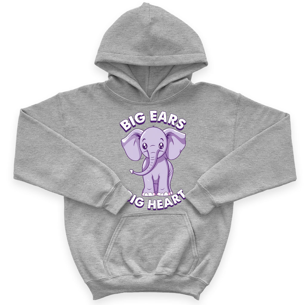 Big Ears Kids’ Sponge Fleece Hoodie – Big Heart Kids’ Hoodie – Elephant Print Hoodie for Kids