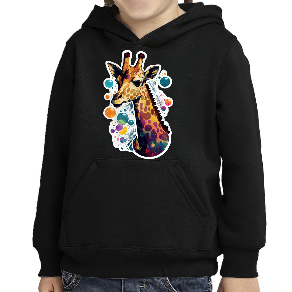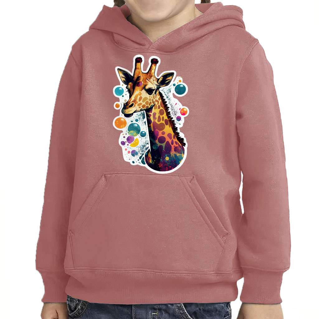 Colorful Giraffe Toddler Pullover Hoodie – Unique Sponge Fleece Hoodie – Cartoon Hoodie for Kids