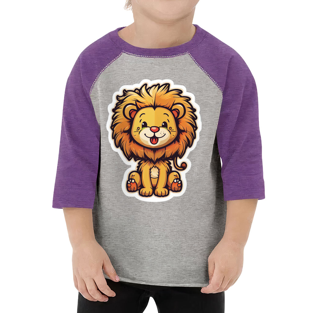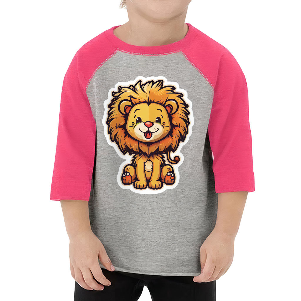 Cute Lion Toddler Baseball T-Shirt – Animal Art 3/4 Sleeve T-Shirt – Funny Kids’ Baseball Tee