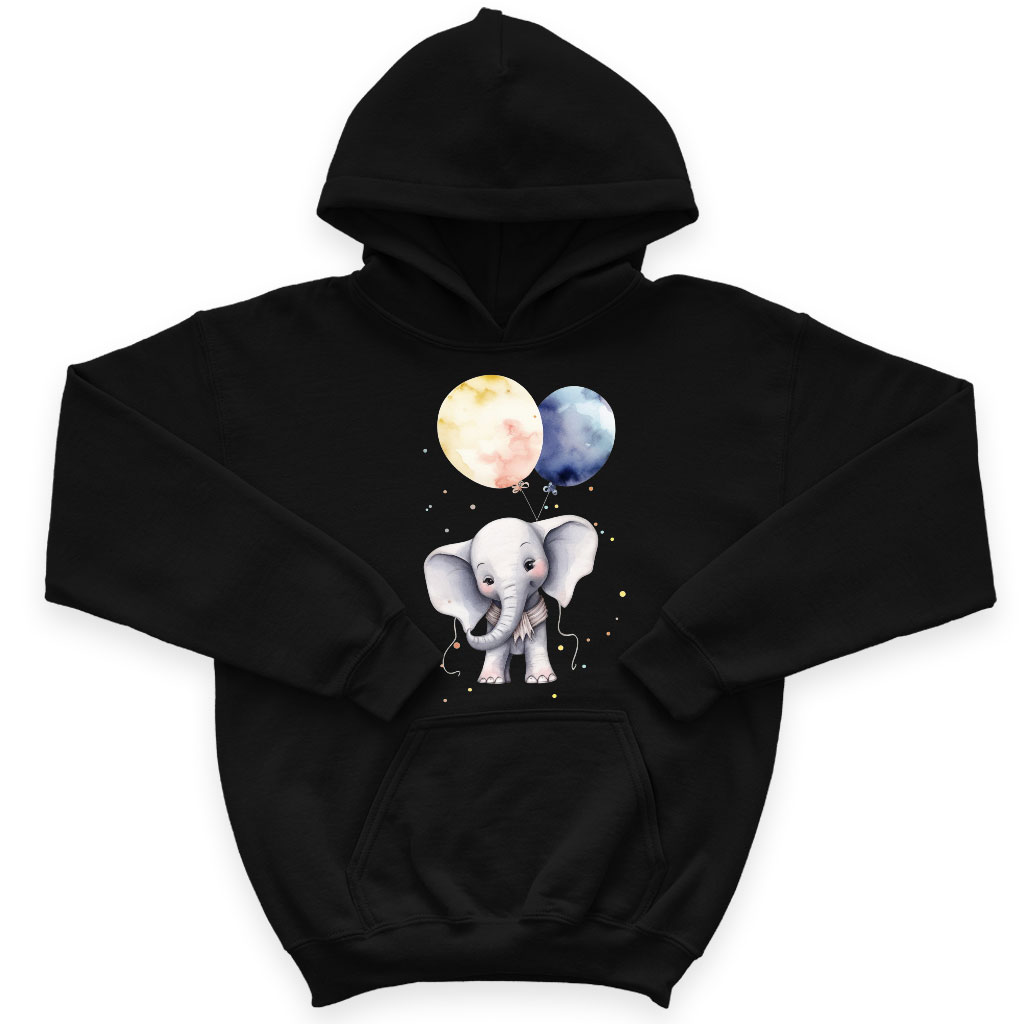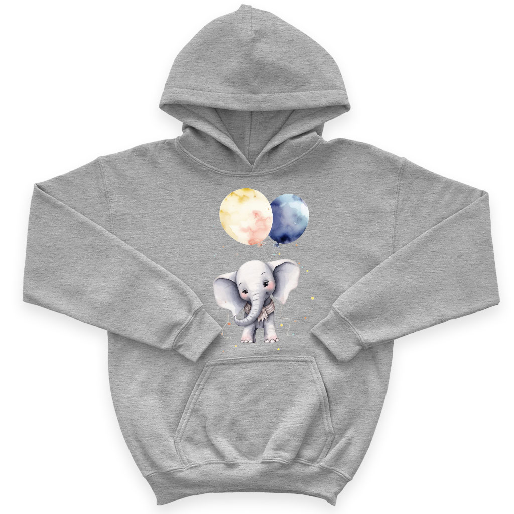 Elephant With Balloons Kids’ Sponge Fleece Hoodie is no ordinary piece of clothing. Its top-stitched hood and