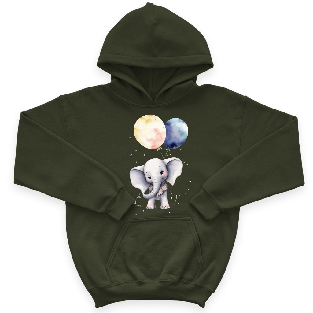 Elephant With Balloons Kids’ Sponge Fleece Hoodie