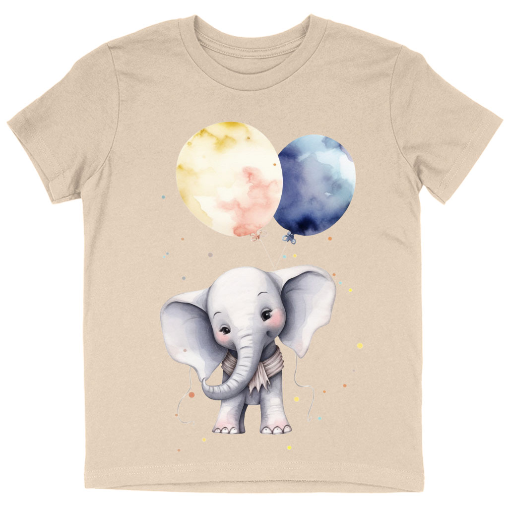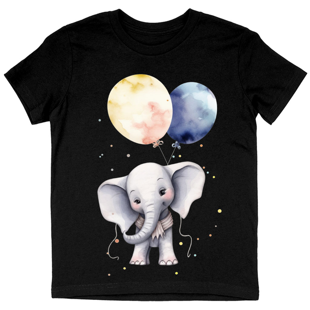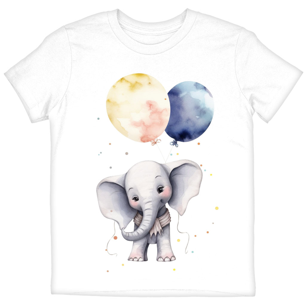 Elephant With Balloons Kids’ T-Shirt – Watercolor Art T-Shirt – Kawaii Tee Shirt for Kids