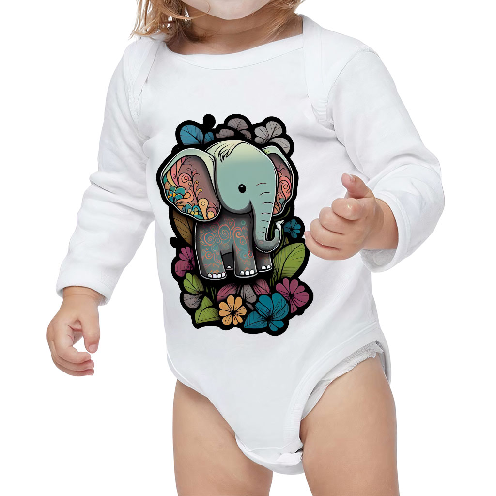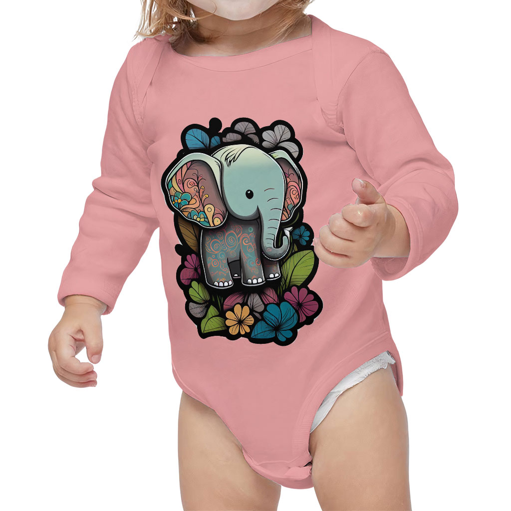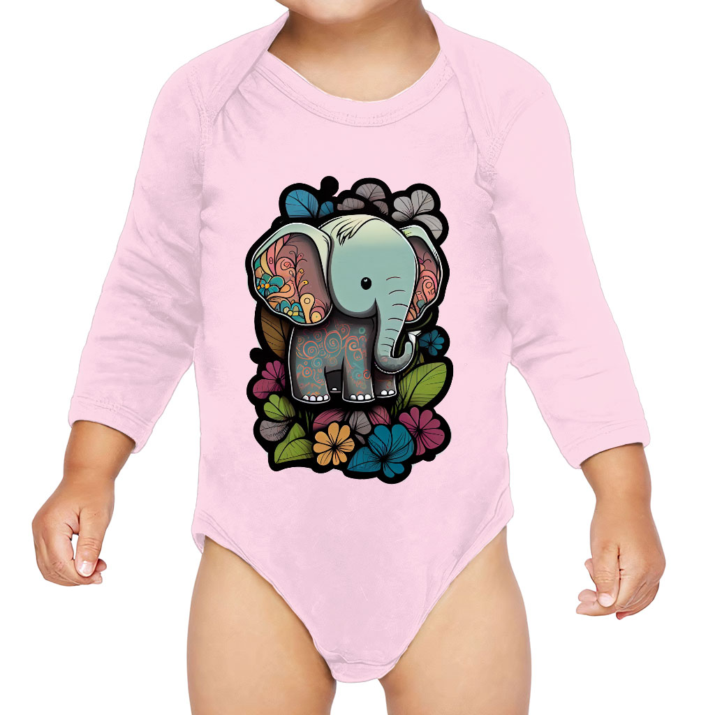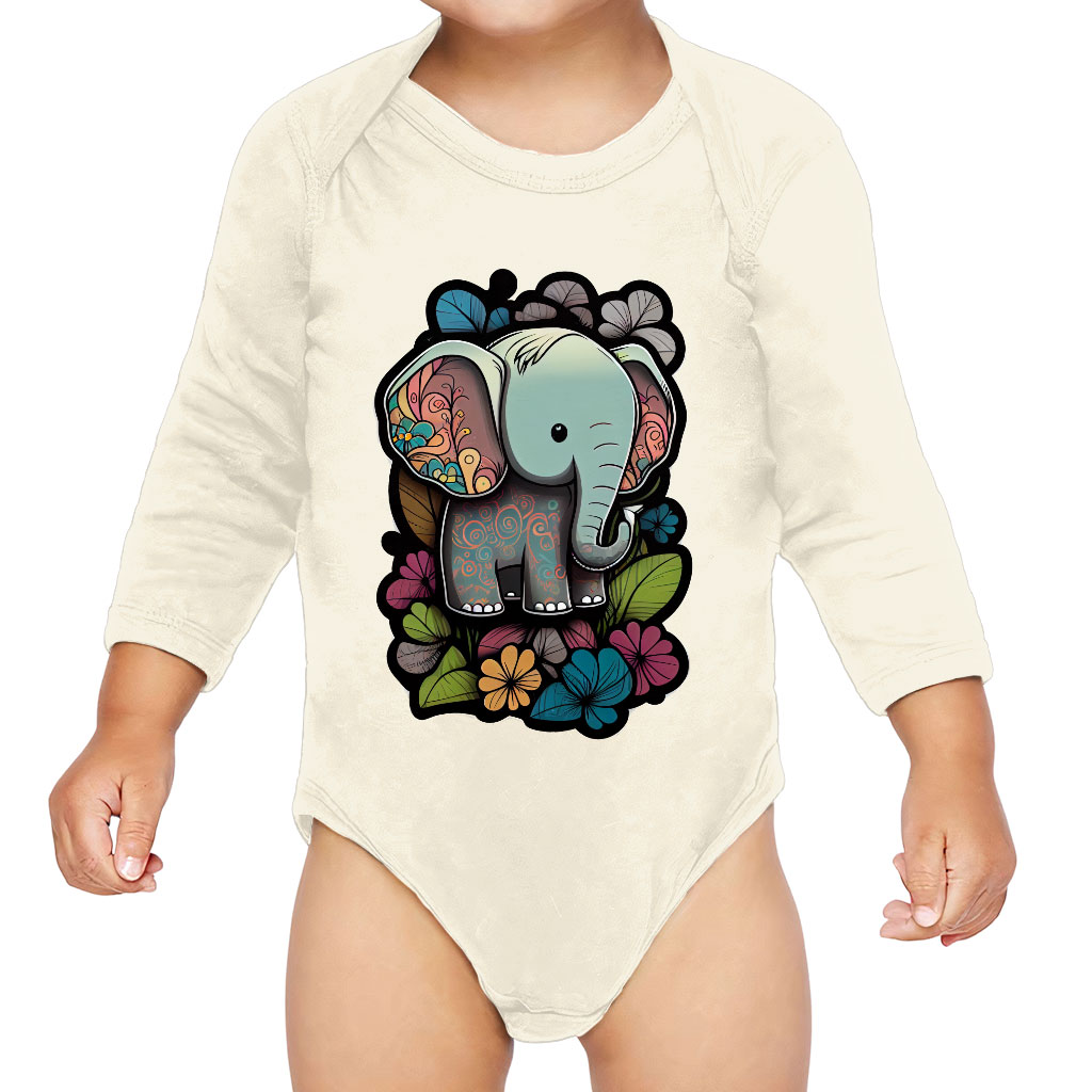 Floral Elephant Baby Long Sleeve Onesie is made of high-quality fabric which makes it soft on the skin, breathable, lightweight, and comfortable to wear. Made of high-end materials, with sturdy stitching and non-fade colors, these bodysuits are extra-durable.