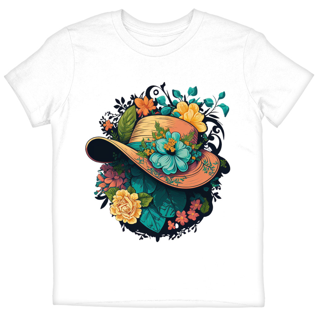 Floral Hat Kids’ T-Shirt is no ordinary piece of clothing. Its crew neck and short