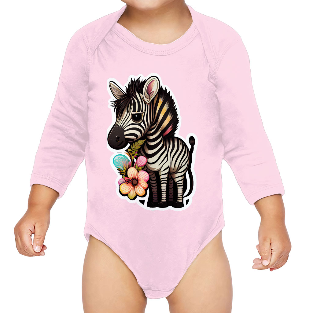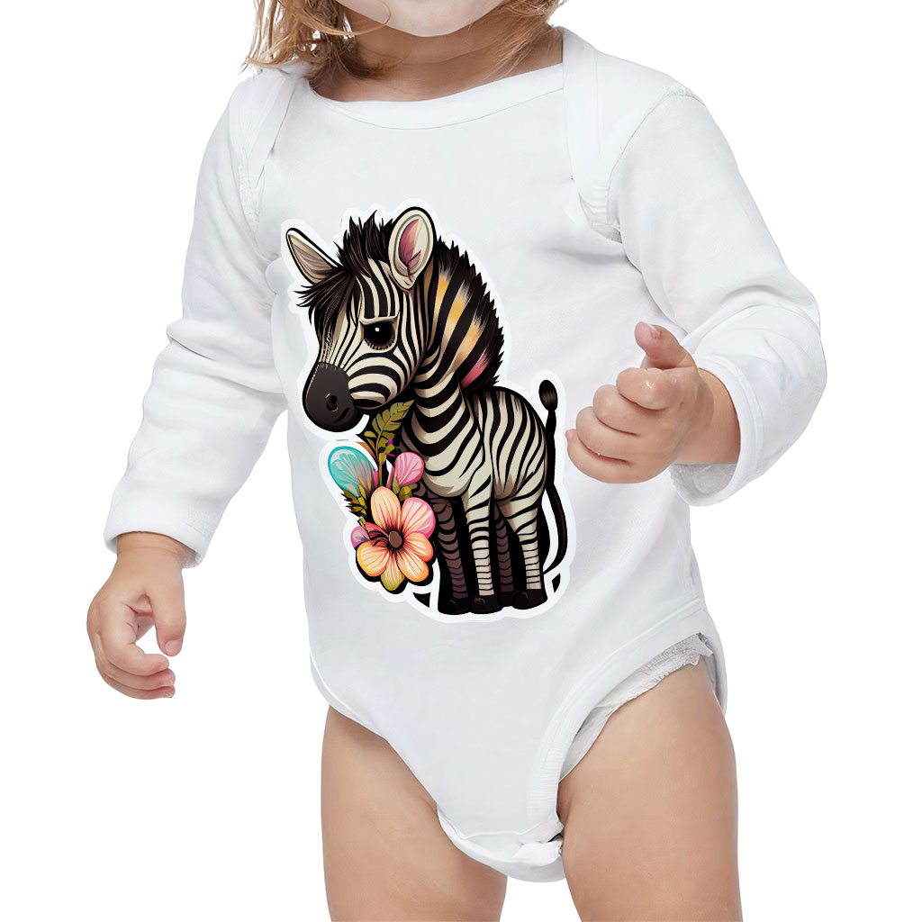 Floral Zebra Baby Long Sleeve Onesie is made of high-quality fabric which makes it soft on the skin, breathable, lightweight, and comfortable to wear. Made of high-end materials, with sturdy stitching and non-fade colors, these bodysuits are extra-durable.