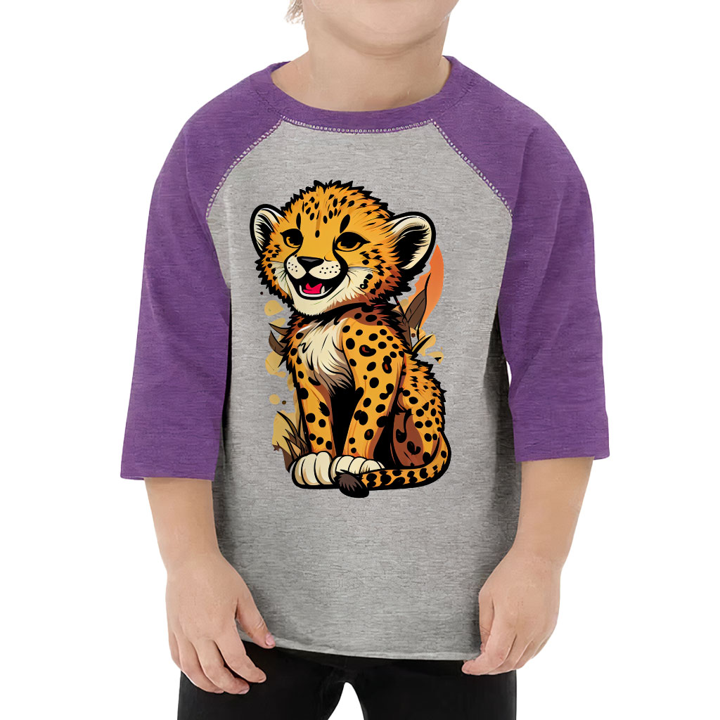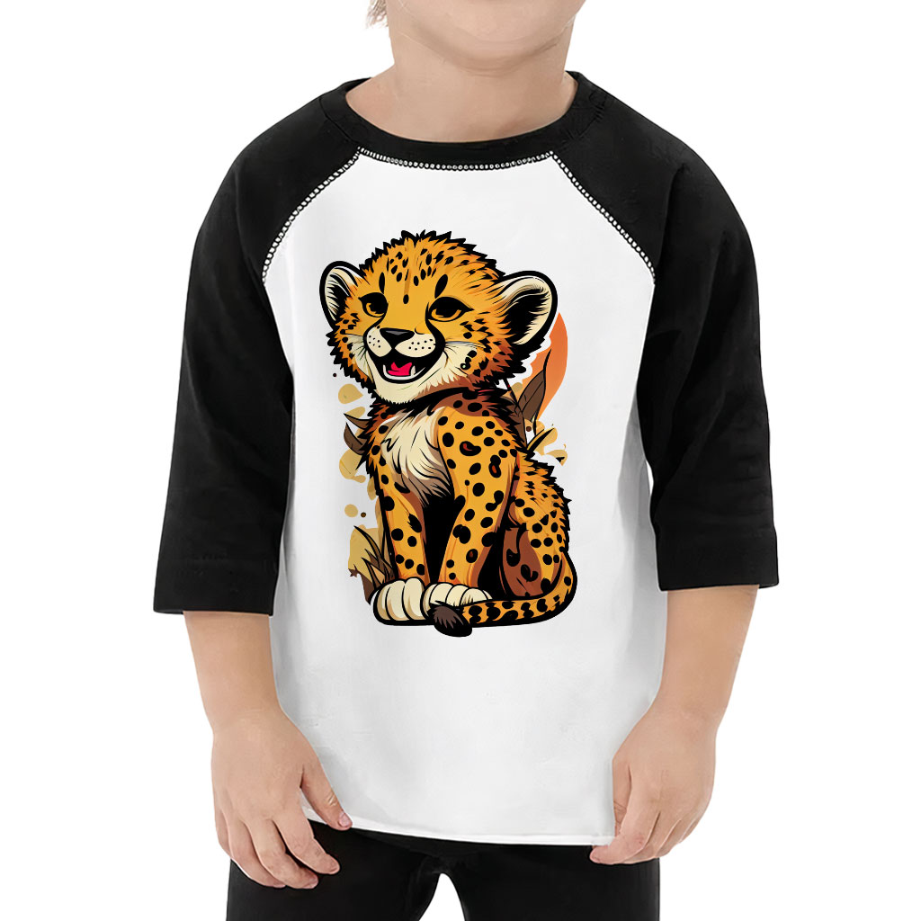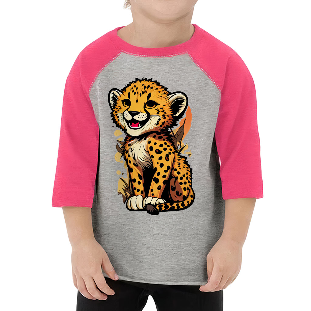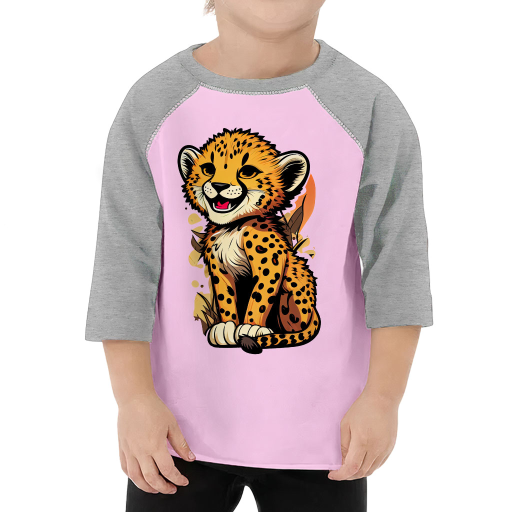 Funny Leopard Toddler Baseball T-Shirt – Graphic 3/4 Sleeve T-Shirt – Art Kids’ Baseball Tee