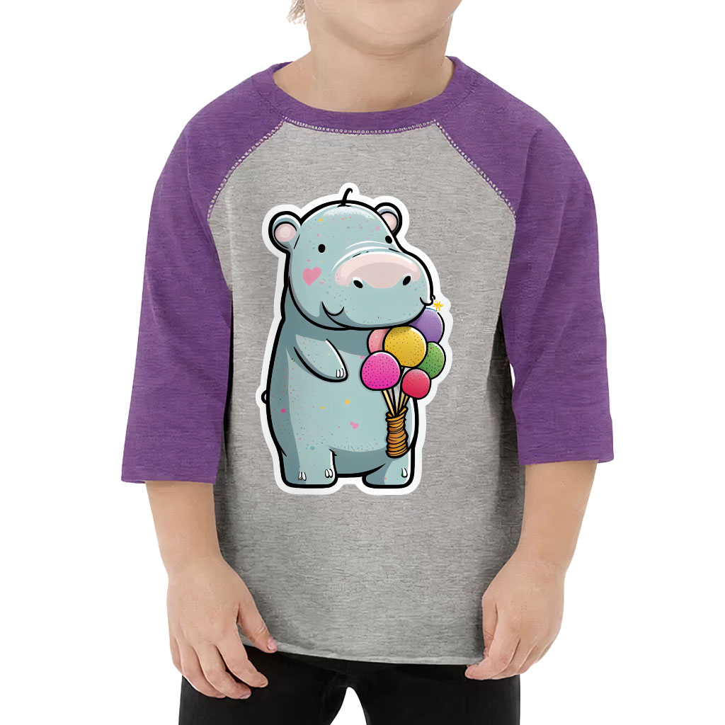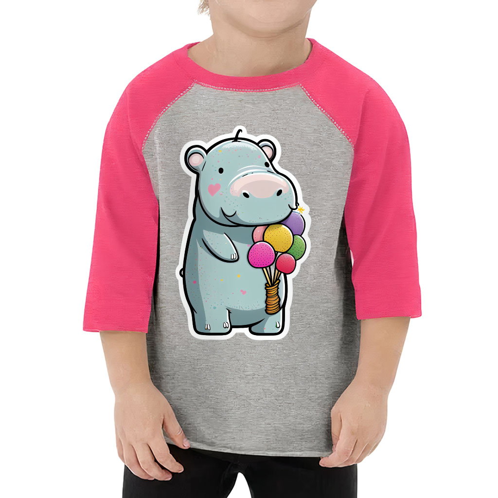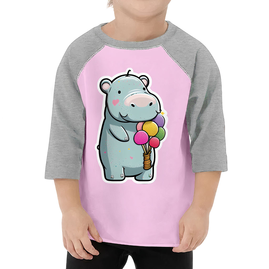 Hippo With Balloons Toddler Baseball T-Shirt