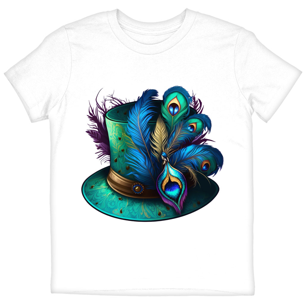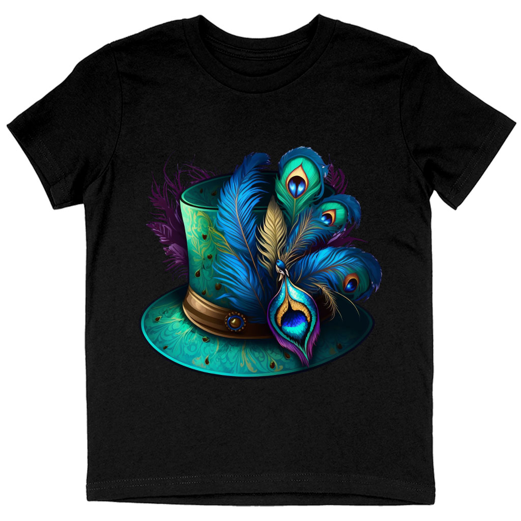 Peacock Design Kids’ T-Shirt is no ordinary piece of clothing. Its crew neck and short