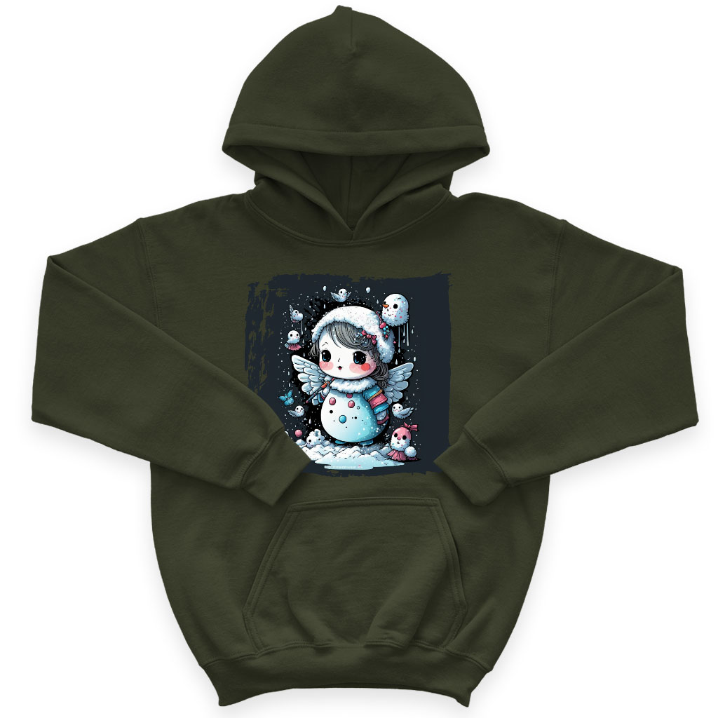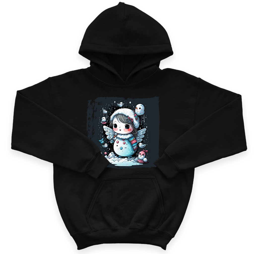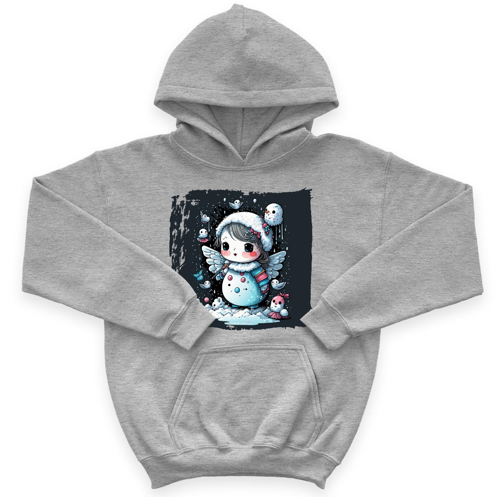 Snowman Design Kids’ Sponge Fleece Hoodie is no ordinary piece of clothing. Its top-stitched hood and