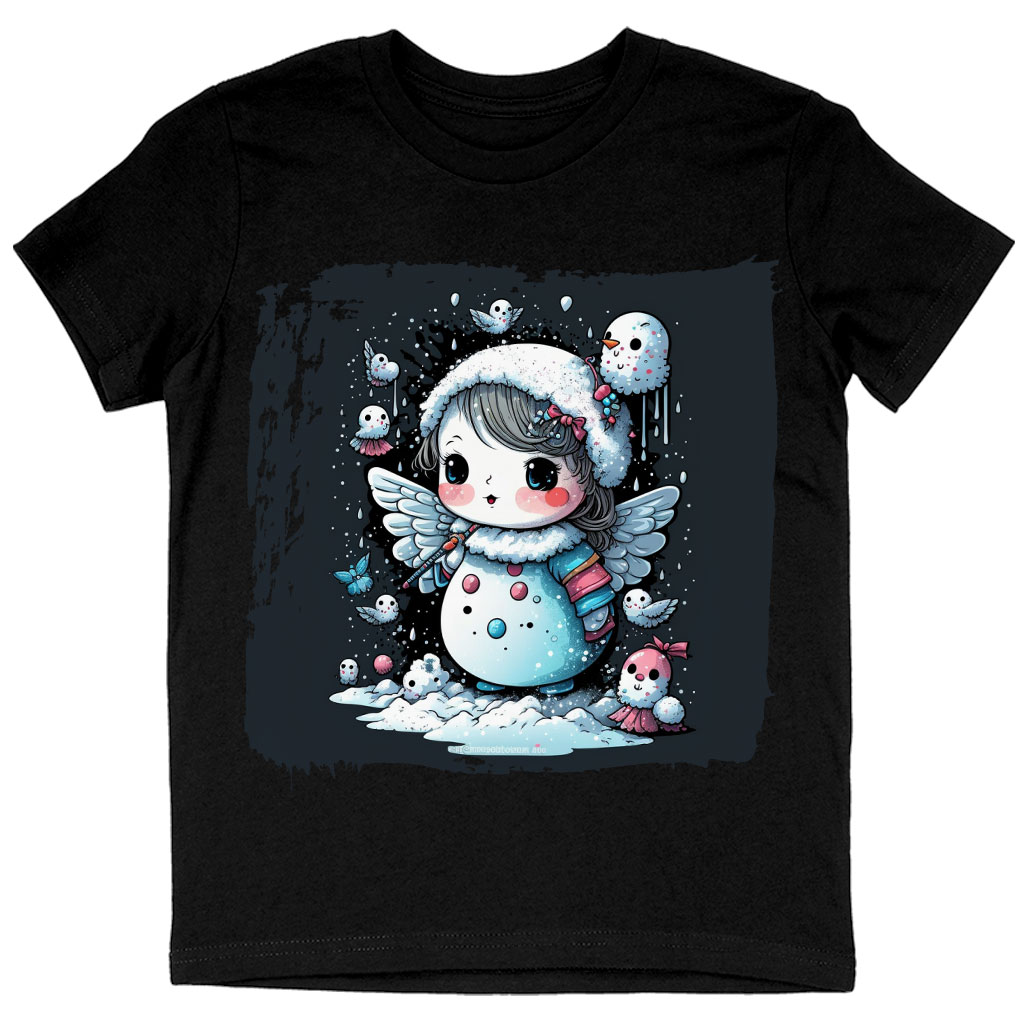 Snowman Design Kids’ T-Shirt is no ordinary piece of clothing. Its crew neck and short